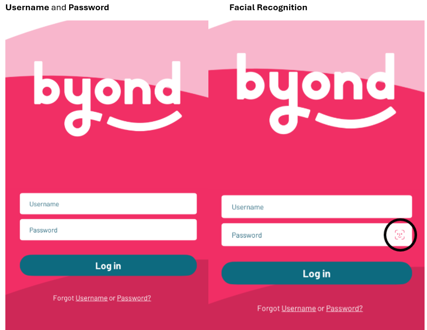 To access your account through the website or the bYond app, use the username and password you created during registration.