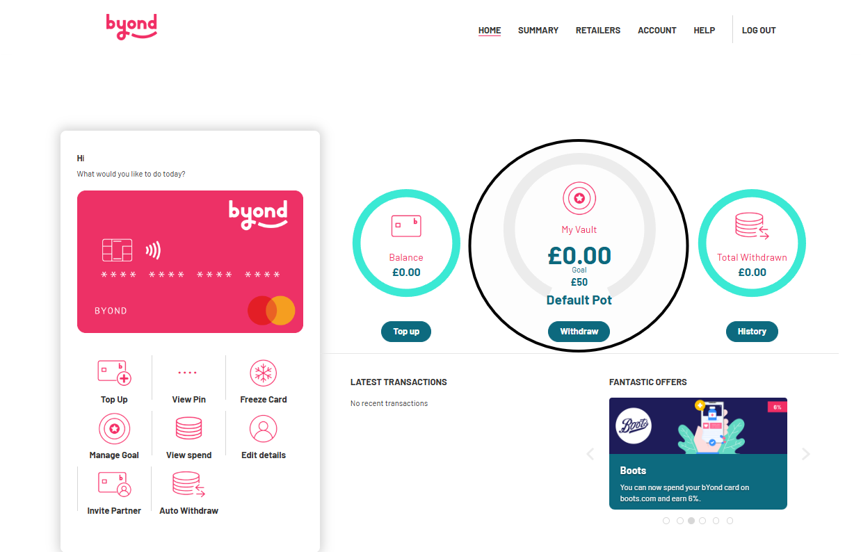 The Vault is a separate pot within your account where we store the money you’ve earned from using bYond.