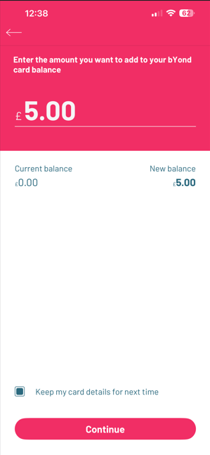 After your first top-up, you can save your debit card details for faster future top-ups.